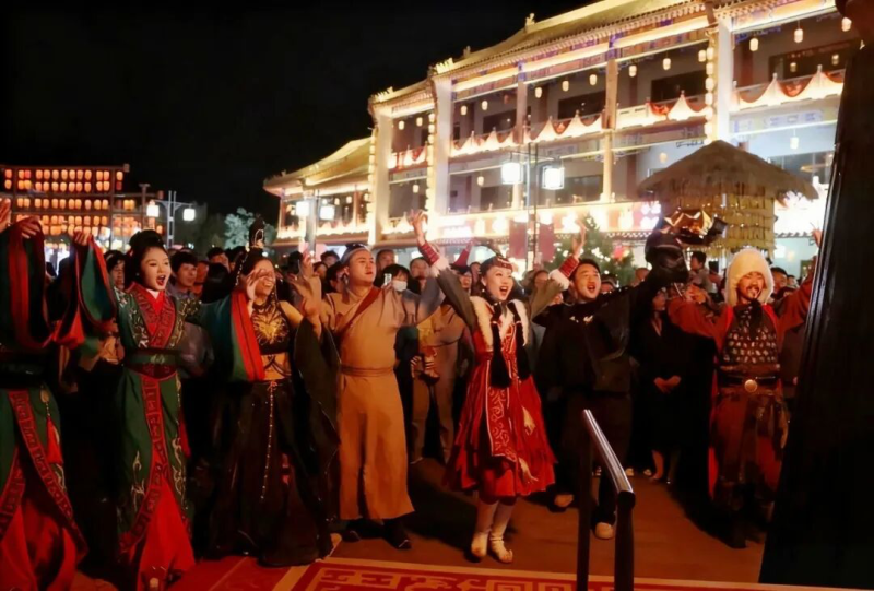 15日,甘州府城举行了盛大的欢迎仪式。非遗传承人深情吟唱喀尔喀蒙古族长调,舞蹈《胡腾胡旋》再现了古丝路的豪情。《凿空—张骞出使西域》的演员们与驼队一同漫步街巷,身着汉服的爱好者衣袂翩跹。夜幕降临,篝火燃起,各族群众手拉手翩翩起舞,歌声与笑声在夜空中回荡,交织成一曲民族团结的和谐乐章。