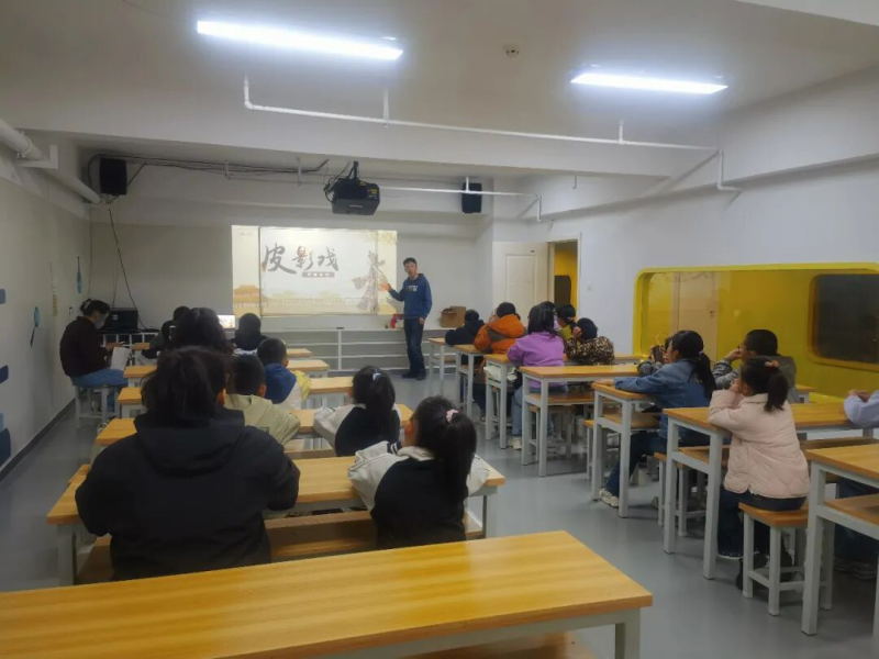 活动巧妙设计了“非遗光影”“科普讲解”“手作体验”三个环节。在“非遗光影”环节,科普辅导员演绎经典皮影戏《小红帽与大灰狼》,幕布之上情节生动、反转不断,引得孩子们笑声连连。在“科普讲解”环节,辅导员以趣味方式从皮影戏作为“有声电影的鼻祖”说起,讲述其被列入国家级非遗和联合国教科文组织非遗名录的保护与传承意义。同时,结合简易实验,阐释“光的直线传播”与皮影镂空透光原理,让抽象知识变得可感可触。在“手作体验”环节,各族青少年共同学习皮影制作技艺,协作完成包含各民族特色人物、象征“石榴籽”般紧紧拥抱的皮影作品。