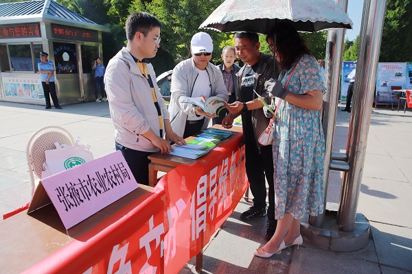 6月5日,张掖市农业农村局积极参加了以“人与自然和谐共生”为主题的“六·五”环境日宣传活动。