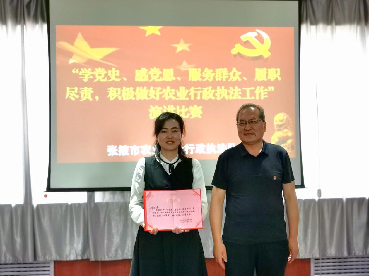 为进一步提升全体执法人员学史明理、学史增信、学史崇德、学史力行的思想自觉。2021年6月18日,张掖市农业综合行政执法队开展“学党史、感党恩,服务群众尽职尽责,积极做好农业行政执法工作”演讲比赛活动。市农业农村局分管领导及市执法队领导班子成员和全体干部职工到场观看竞赛。