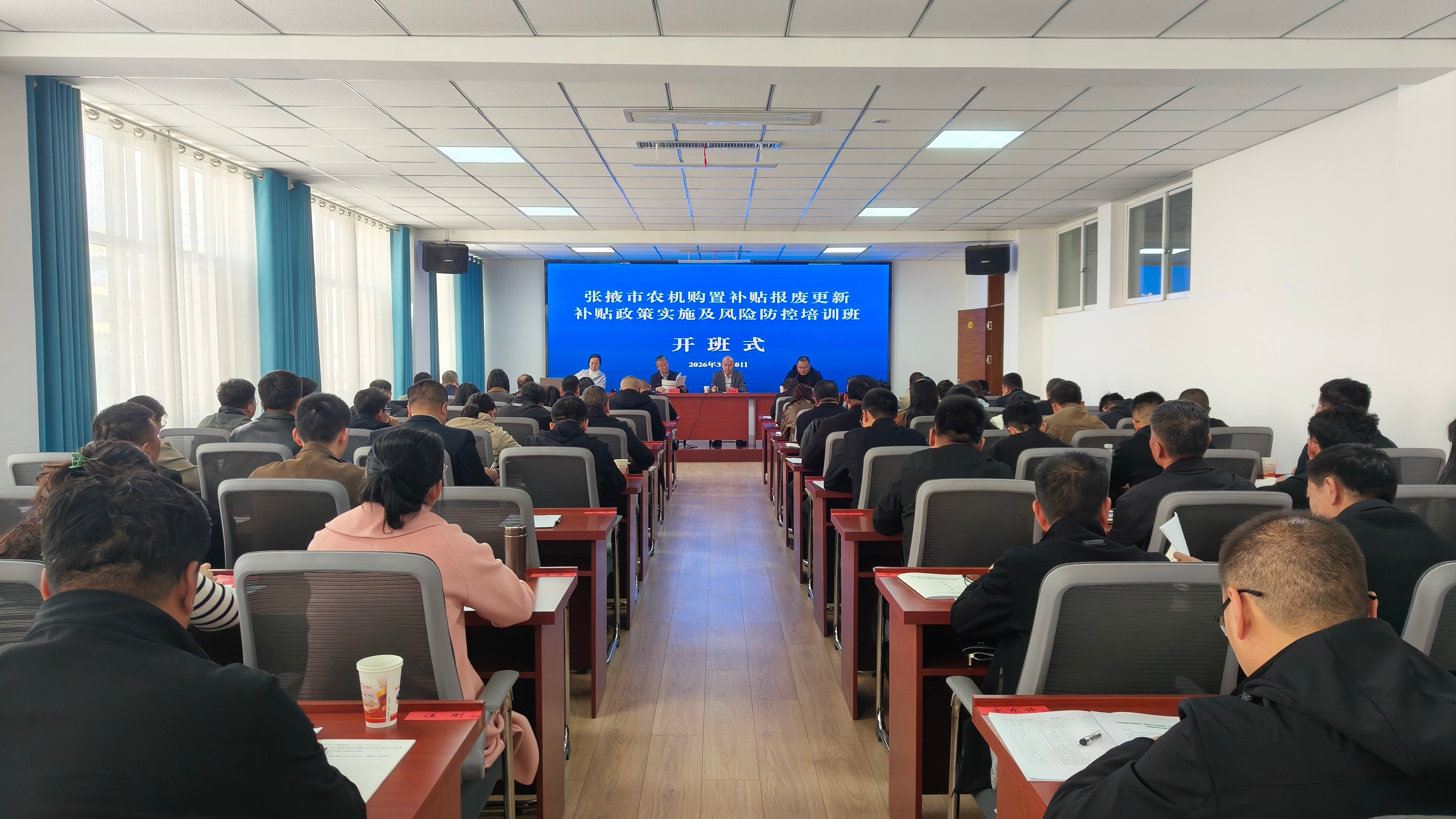 为进一步提高全市农机购置补贴工作人员业务水平和风险防控能力,确保中央农机购置补贴、报废更新补贴政策规范有序实施,3月30日至31日,张掖市农业农村局、中共张掖市委党校联合举办了2026年全市农机购置补贴、报废更新补贴政策实施及风险防控培训班。全市六县区农业农村局及60个乡镇人民政府负责补贴办理及政策宣贯的相关工作人员共计70人参加了本次培训。