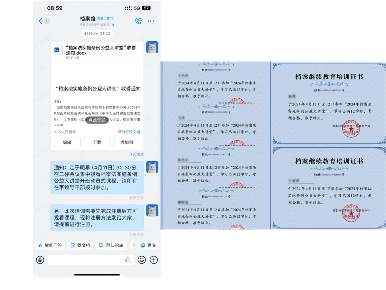 通过此次培训,大家充分认识到加强档案事业的重要性,对《实施条例》的修订有了进一步的了解。大家纷纷表示,公益大讲堂辅导讲座内容丰富,对《实施条例》的解读条理清晰、重点突出,既有理论高度、又有实践深度,为准确把握档案工作新的形势和任务,不断开拓全市档案工作新局面提供了有力指导。