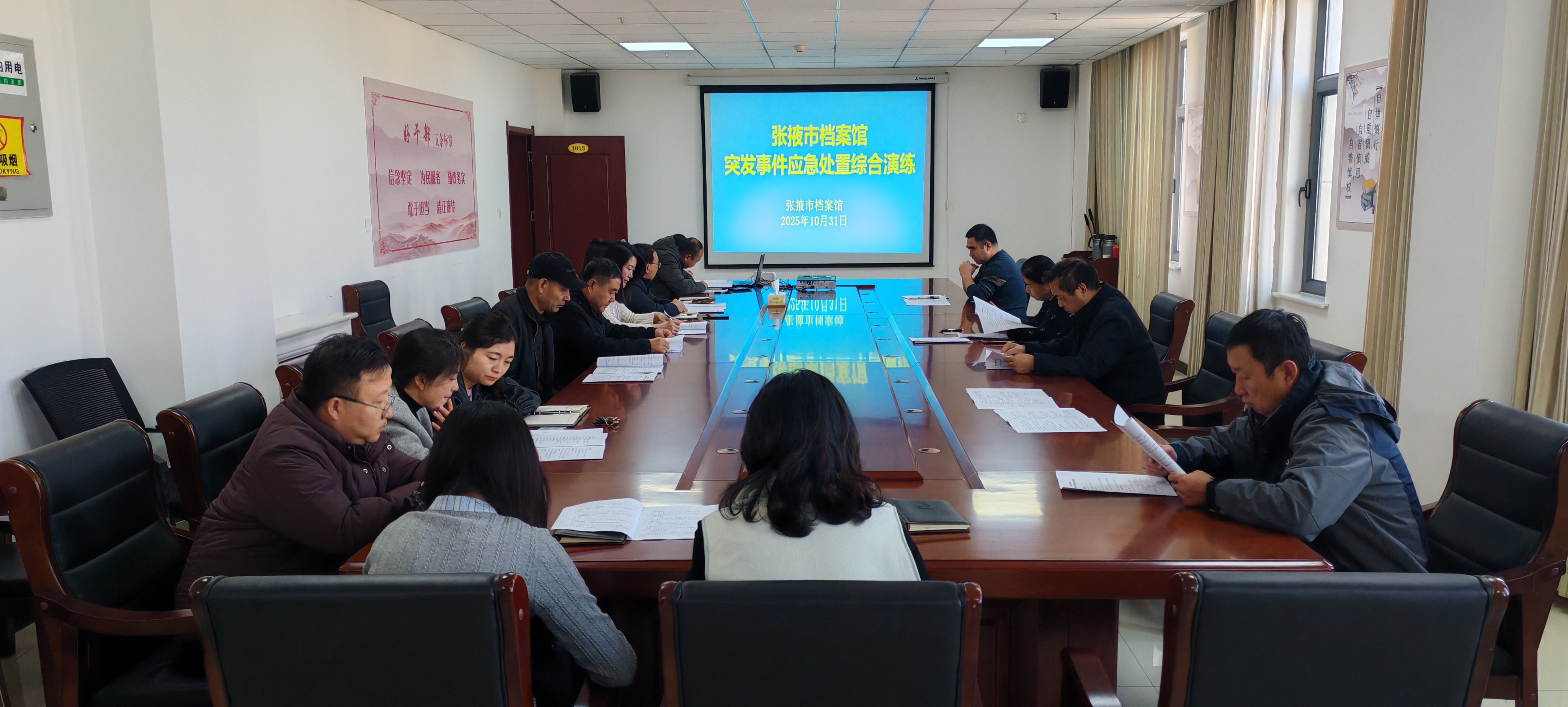 10月31日上午,张掖市档案馆组织开展了2025年度突发事件应急处置综合演练。此次演练旨在全面检验《张掖市档案馆突发事件应急处置预案》的可行性和有效性,进一步增强全馆干部职工的防灾减灾意识及协同处置能力,切实保障人员、档案实体与信息资源的绝对安全。