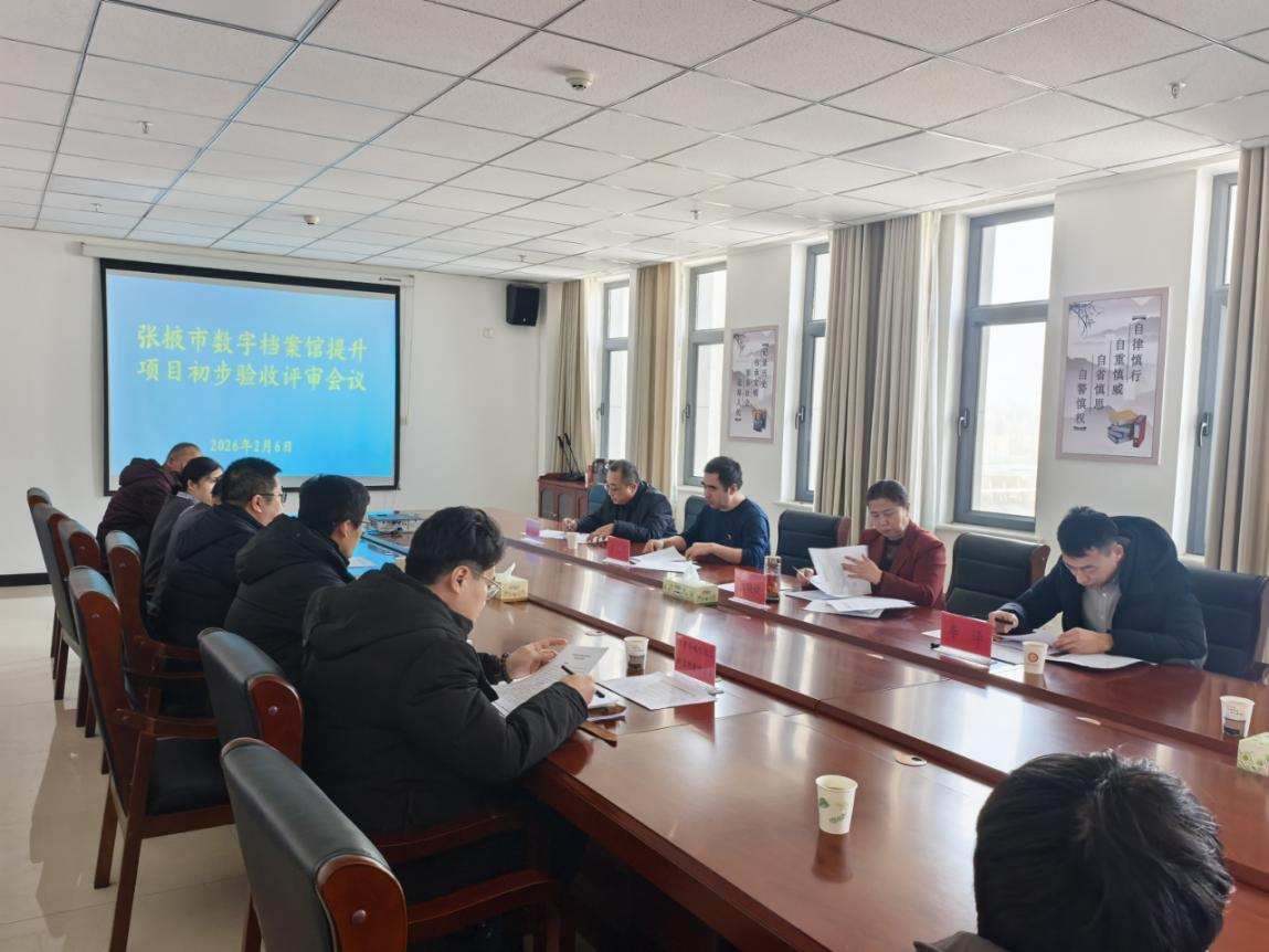 2月6日,张掖市档案馆组织召开市数字档案馆提升项目初步验收会,市档案馆馆长孟晓婕、班子成员及相关科室负责人、评审专家、承建单位和监理单位相关人员参加会议。