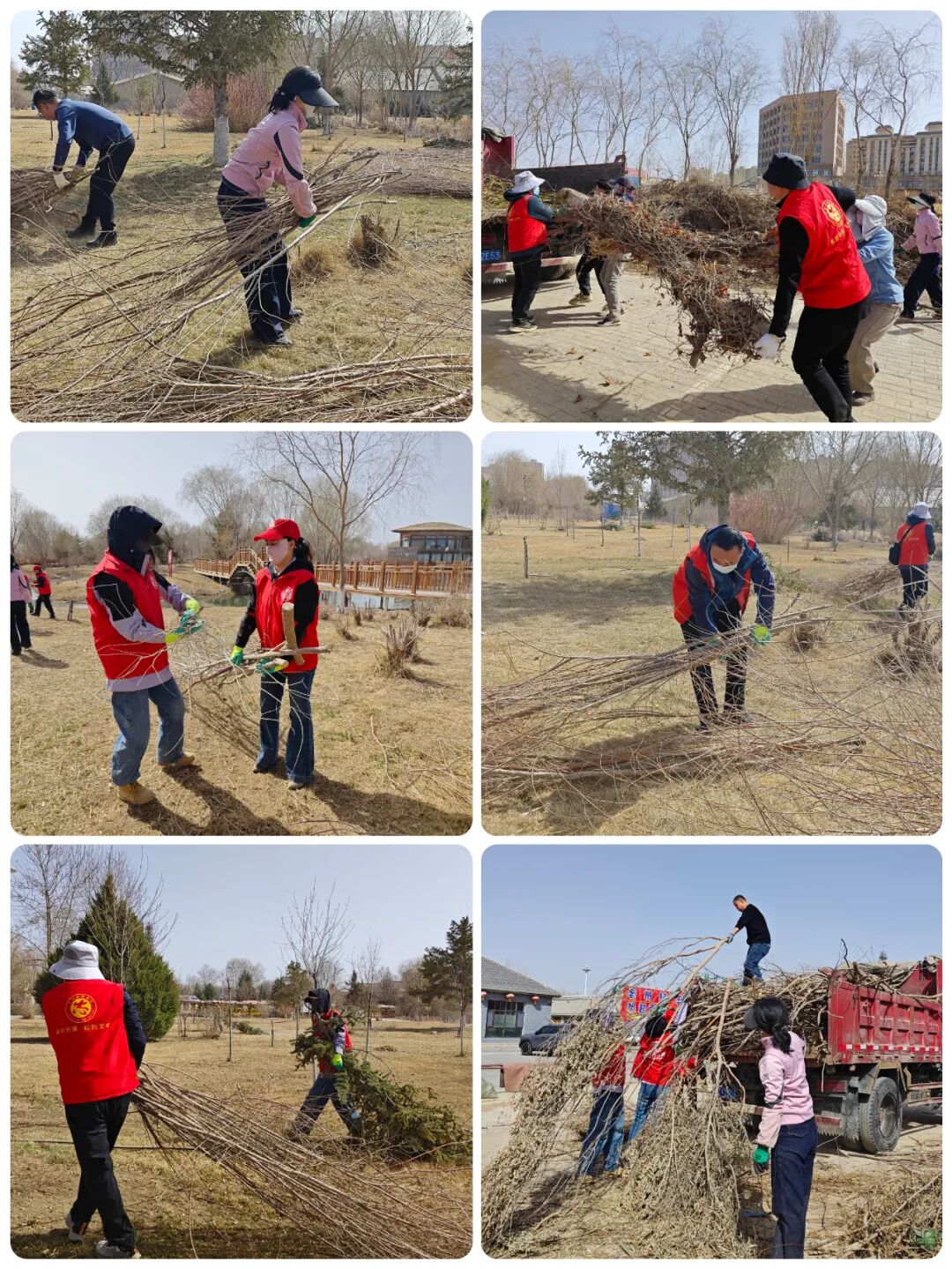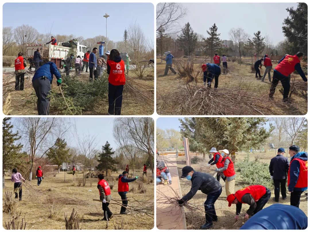 活动现场,党员干部带头冲锋、示范引领,在湿地博物馆周边全面开展环境卫生整治,助力全国文明城市创建。大家分工协作、干劲十足,有的俯身清理卫生死角积存垃圾,有的合力搬运春季修剪下来的枯树枝,有的主动协助装车运输,不怕脏、不怕累,现场呈现出一派热火朝天、紧张有序的劳动景象,以党员志愿“红”守护湿地生态“绿”,以洁净优美环境夯实创城基础、提升城市形象。