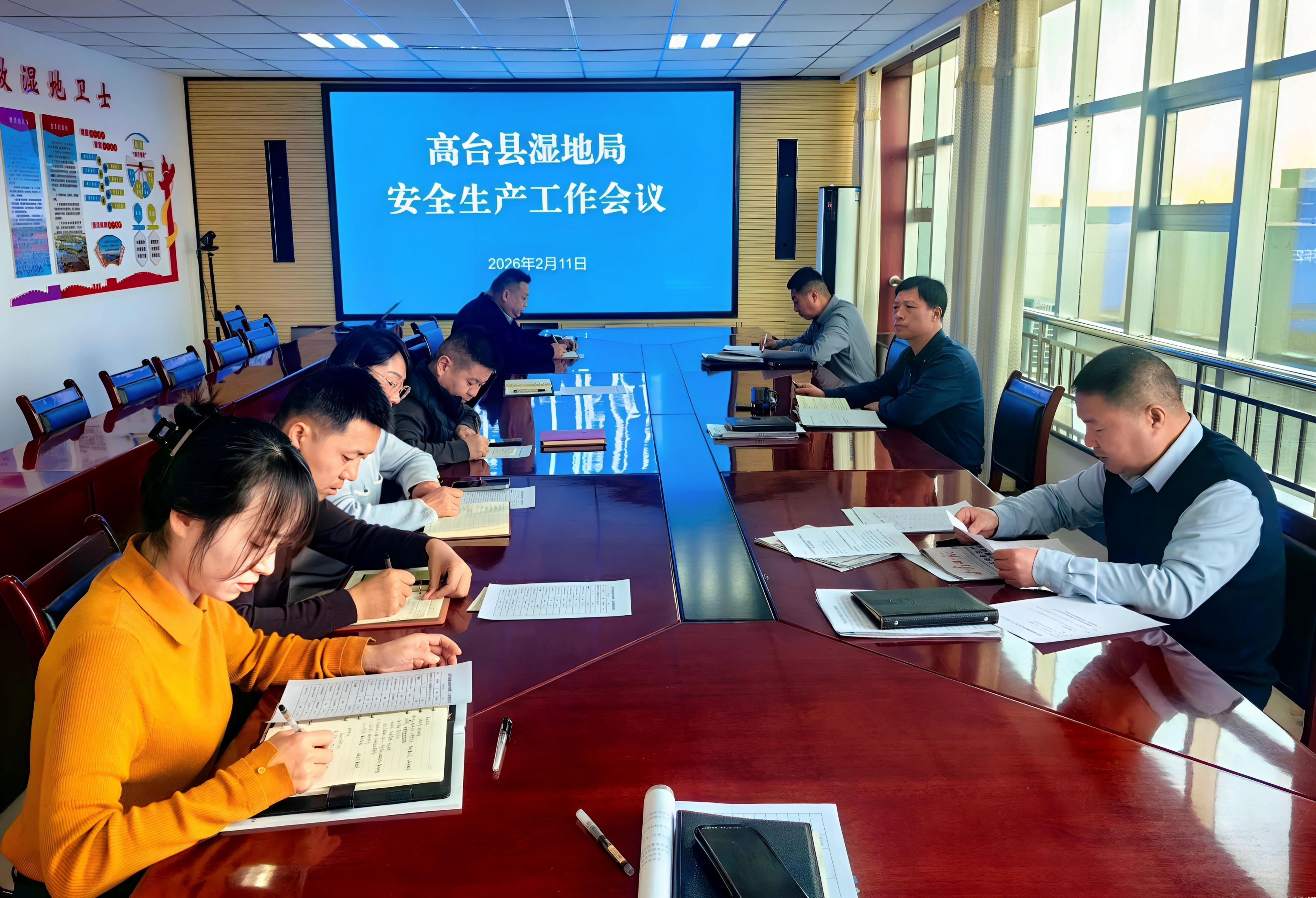 县湿地局召开节前安全工作专题会议,班子成员、各科室负责人及相关管护人员参加会议。会议学习了习近平总书记关于安全生产的重要论述,传达学习了省、市、县安全生产工作会议精神,以及上级部门关于节前安全生产、湿地防火、应急值守等工作的部署要求,总结近期湿地安全管护工作开展情况,深入分析节前湿地安全工作面临的形势,重点梳理防火、防溺水、设施安全等方面存在的风险隐患。