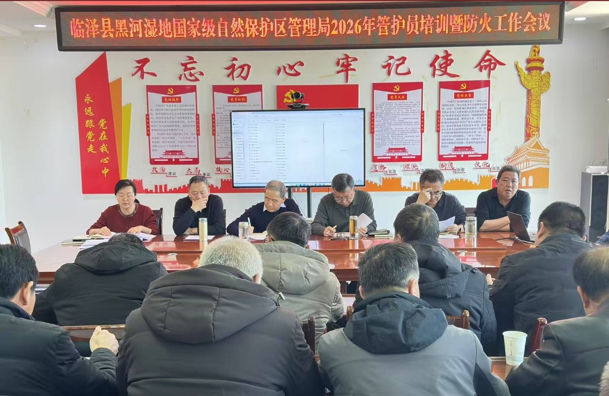2月10日上午,临泽县湿地局召开2026年度管护员培训暨节前防火会议。局分管领导、相关职能科室负责人、全县湿地及保护区管护员共40余人参加会议。