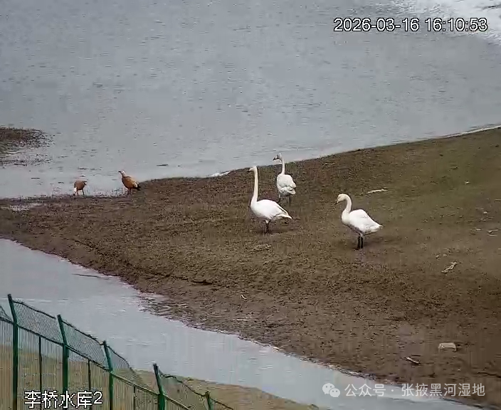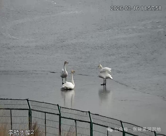 大天鹅是国家二级重点保护野生动物,也是世界上飞得最高的鸟类之一,最高飞行高度可达9000米以上,每年3至5月是它们从越冬地向北迁徙的关键时期,常沿湖泊、河流等水域迁徙,沿途不断停歇觅食、补充体力。此次三只大天鹅选择在李桥水库停歇,不仅因为这里有着相对安全的栖息环境,更得益于水库周边良好的生态水质和充足的食物来源,成为它们漫长迁徙途中可靠的“能量补给站”。