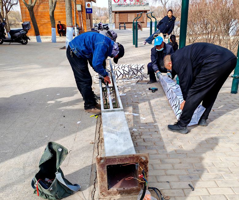 本次专项行动组织各区域管护人员及公益性岗位人员对湿地公园全域开展系统排查与集中整治,重点清理湖面漂浮物、水草、白色垃圾、枯枝落叶及绿化带积存垃圾,对主次干道、木栈道、卫生死角实施精细化清扫保洁,累计清运积存垃圾350m³。同时,对园内公共设施进行全面排查整治,完成坐凳、灯具等设施擦拭280余处,维修桥梁、栈道15处,检修照明设施70余处,切实消除环境“盲区”与安全隐患,显著提升区域环境质量。