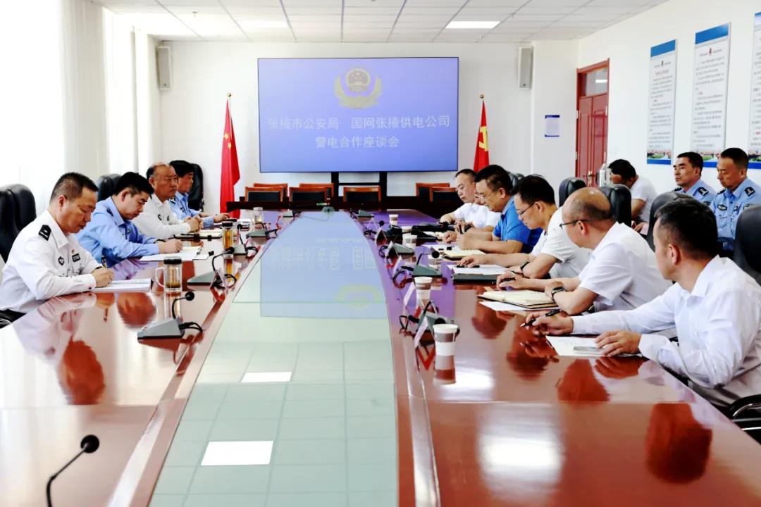 市公安局党委委员、副局长毛建华,党委委员马刚,党委委员、指挥中心主任赵德军,国网张掖供电公司安全部、营销部负责人,市公安局相关部门负责人参加了座谈会。