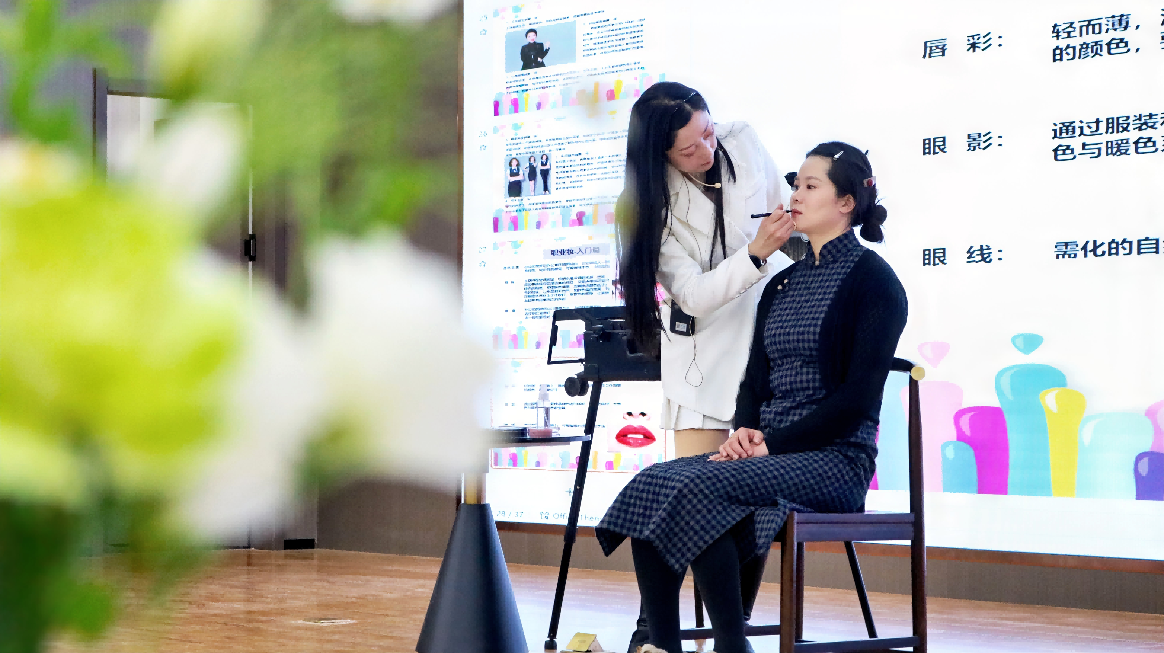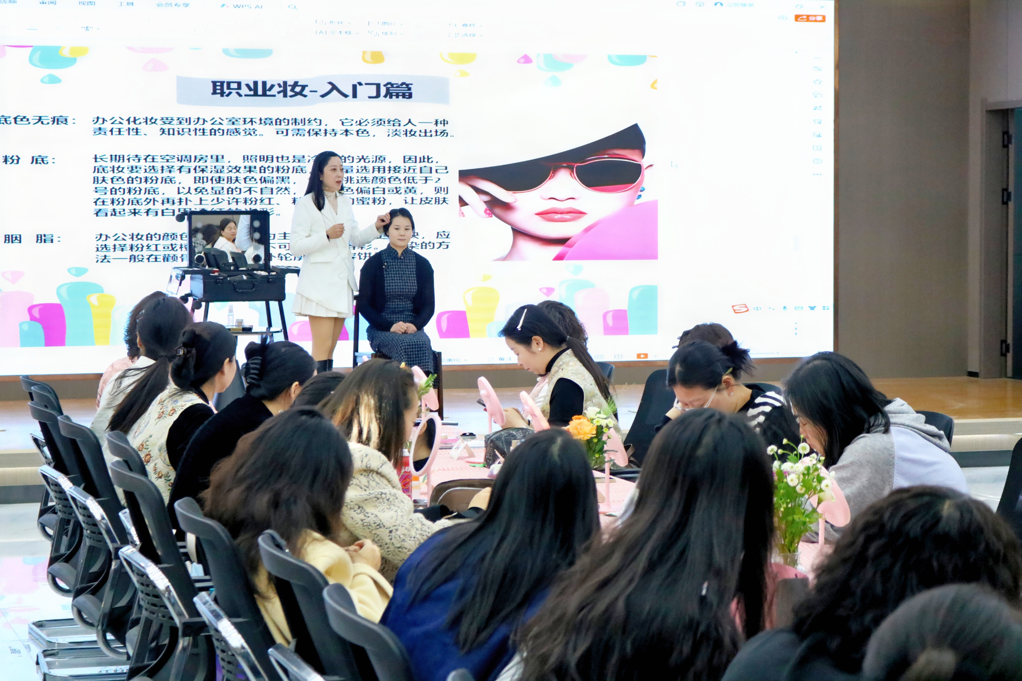 活动中,专业美妆讲师带来了一场别开生面的化妆知识讲座及现场实操。讲师详细讲解了日常妆容、职场妆容的特点与适用场合,深入分析不同肤质、脸型的化妆要点,并分享了基础护肤步骤与产品选择技巧。实操演示中,挑选了一位女职工进行现场化妆示范,按照洁面、护肤、底妆、眼妆、腮红等步骤,每一步都细致展示产品使用方法和化妆技巧,女职工们分组进行实操,每组配备镜子,大家自带化妆品进行化妆实践,老师巡回指导,及时解答疑问并纠正错误操作,让女职工们直观感受化妆的魅力与变化。