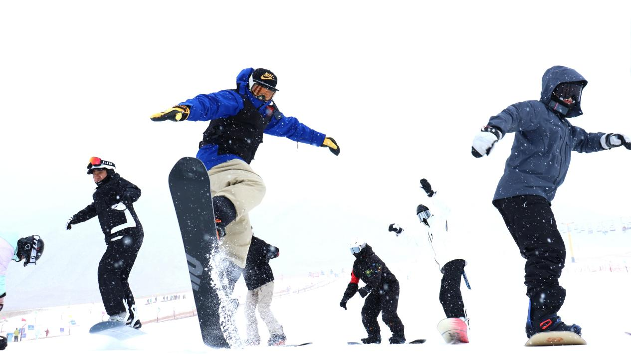 活动现场,裕固族歌舞表演团身着绚丽盛装,在皑皑雪地上围圈起舞。明快的锅庄舞步、嘹亮的民族歌声与现场阵阵欢笑声交织共鸣,回荡在祁连山谷间,将活动氛围推向高潮。雪道之上,由专业教练与滑雪爱好者组成的表演队驭风而下,腾跃、翻转、俯冲,一系列流畅利落的动作行云流水。他们在升级完善的雪场中,开启冬春滑雪季的精彩“首秀”,在银装素裹的冰雪世界里,尽情释放运动激情,展现冰雪运动的独特魅力。