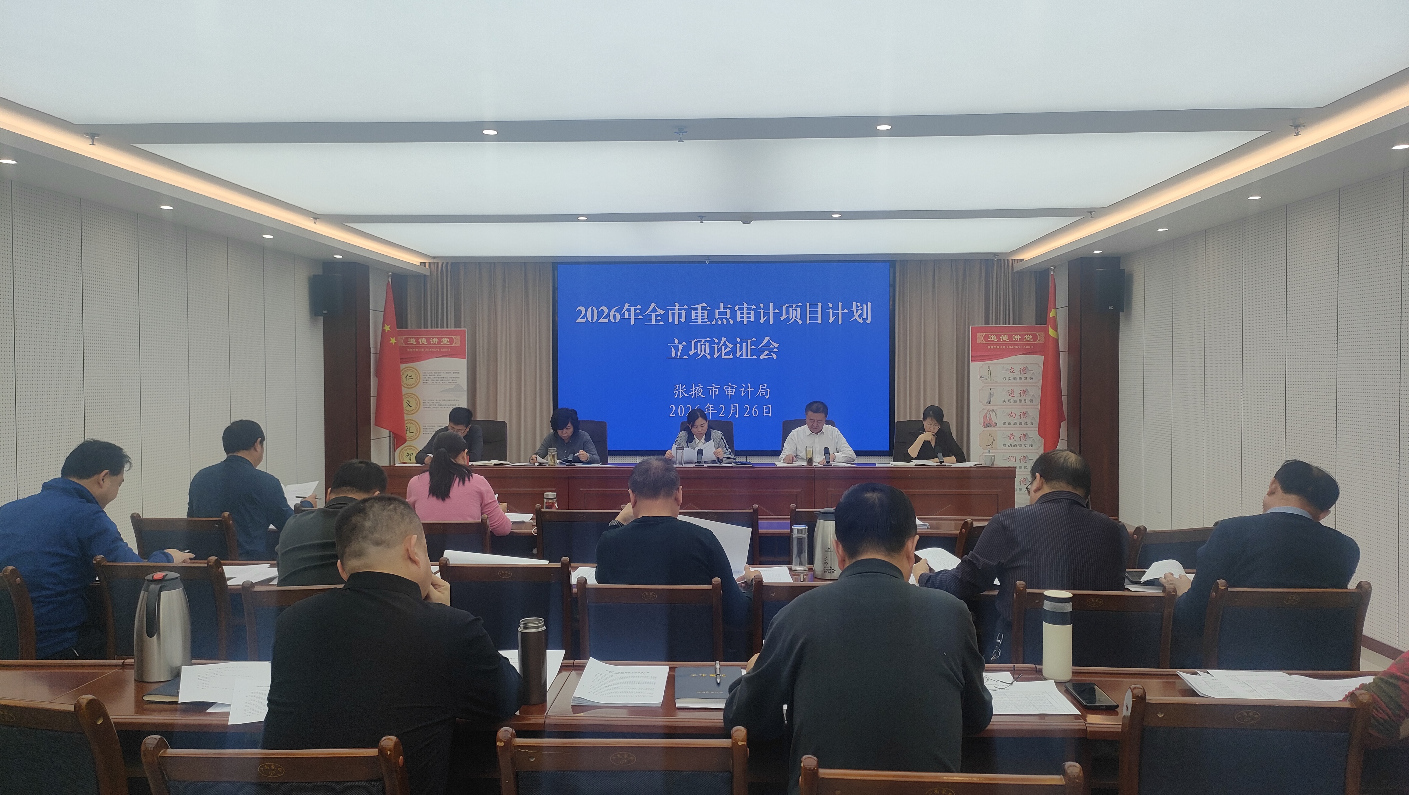 为科学谋划2026年度审计项目计划,提升审计项目立项的科学性、精准性和前瞻性,近日,张掖市审计局组织召开2026年度全市重点审计项目计划立项论证会。