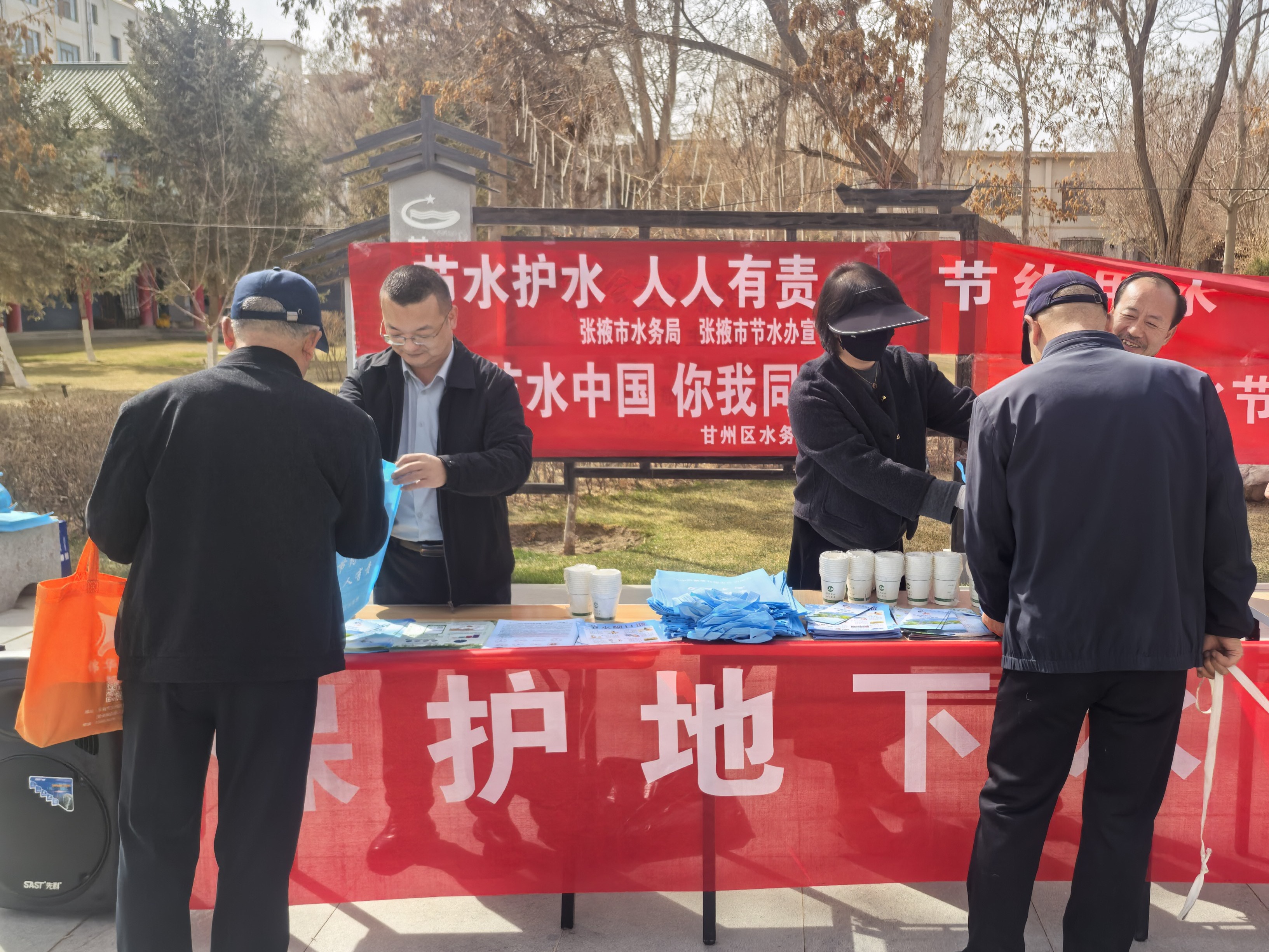 活动现场,鲜亮的宣传横幅迎风舒展,宣传展台前人气满满,不少休闲健身、结伴游玩的群众主动围拢过来,咨询家庭节水知识和实用技巧,与工作人员热切互动交流。工作人员通过设置展台、悬挂标语、发放资料、现场讲解、播放节水主题歌曲、播报涉水法律法规音频等多样形式,向过往群众普及实用的日常节水技巧,讲解地下水超采的生态危害,介绍张掖市水资源现状、水情形势和治水护水举措,用通俗的话语把枯燥的节水知识化作鲜活易懂的常识,引导群众树牢惜水、爱水、节水意识。