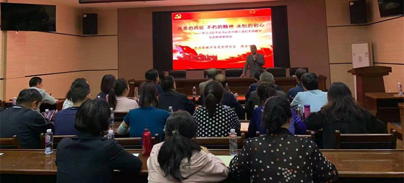 活动中,邀请市委党史研究室四级调研员陈金荣上党课,全体党员干部更换红军服参观中国工农红军西路军纪念馆,向革命先烈敬献花篮,肃穆默哀,深切悼念为革命事业英勇献身的革命烈士。