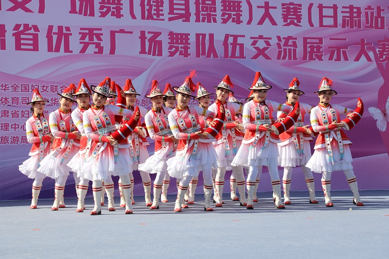 随着欢快的音乐旋律在广场上空响起,比赛正式开启。各参赛队伍身着色彩艳丽的演出服装,迈着整齐划一的步伐依次登场。翩翩起舞的身影,是力量与柔美的结合,是健康与快乐的传递,队员们精神饱满、笑容洋溢,用灵动的舞姿诠释着对广场舞的热爱——参赛作品题材丰富多元,既有融入历史与传统文化的《丝路梵音》《俏花旦》《乡情》,让观众在舞蹈中感受甘肃深厚的文化底蕴;也有展现地域特色与风土人情的《白马》《太阳姑娘》《故乡调调》《牛角鼓》,生动呈现陇原大地的独特魅力与新时代儿女的精神气象,每一支舞蹈都传递着群众对美好生活的向往,勾勒出幸福美好新甘肃的生动图景。经过精彩纷呈的角逐,最终,酒泉社会体育指导员协会代表队《丝路梵音》夺得第一名;张掖市代表队《牛角鼓》斩获第二名;金昌市广场舞运动协会群星舞蹈团《白马》荣获第三名。