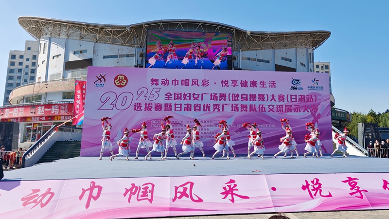 10月12日上午,2025年全国妇女广场舞(健身操舞)大赛(甘肃站)选拔赛暨甘肃省优秀广场舞队伍交流展示大赛在临泽县文化体育广场举行。