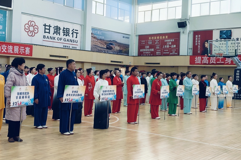 12月19日至20日,由张掖市体育局、张掖市体育总会主办,张掖市武术协会承办的2025年张掖市全民健身太极拳(器械)、健身气功交流展示赛在市全民健身中心成功举办。来自全市五县一区的16支代表队、200余名健身爱好者齐聚赛场,同台切磋技艺、交流健身心得。