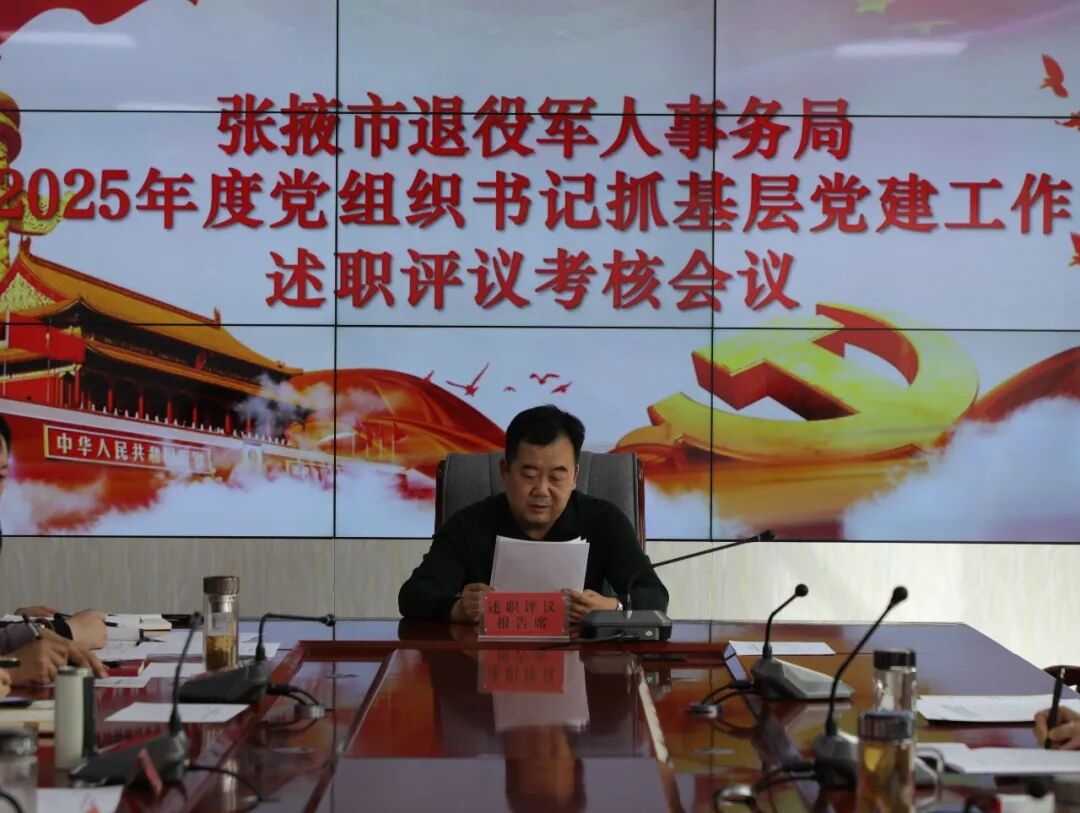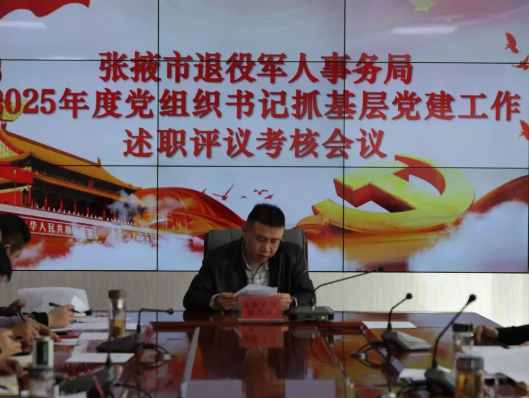 会议传达了全省、全市2025年度党委(党组)书记抓基层党建和人才工作述职评议考核大会精神,局机关党支部书记周廷杰、市军供站党支部书记王应璋、市退役军人服务中心党支部书记赵钰磊分别进行述职,局党组书记、局长安月香点评并讲话。与会人员对述职情况进行了民主测评。