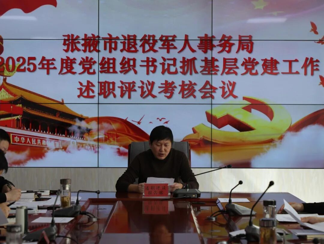 3月2日,市退役军人事务局召开2025年度党组织书记抓党建工作述职评议考核会议,局党组书记、局长安月香点评并讲话,局党组成员、副局长、党总支书记白登江主持。局机关、军供站、服务中心党支部全体党员参加会议。