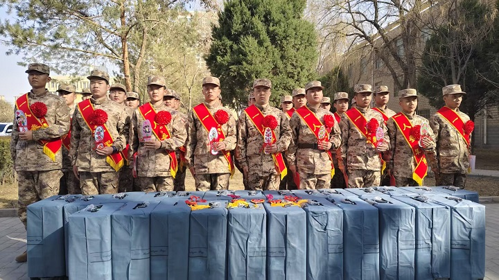 仪式现场,身着崭新戎装的新兵们身姿挺拔、精神抖擞,胸前的红花格外醒目,脸上洋溢着青春的朝气与坚毅。他们目光坚定、意气风发,眼中既有对未来军旅生活的无限憧憬,更有扛起保家卫国重任的坚定信念,用挺拔的姿态诠释着新时代青年的责任与担当。军地领导依次为新兵送上殷切寄语,勉励他们牢记初心使命、传承红色基因,扛起保家卫国的神圣责任,在军营中锤炼意志、苦练军事本领,严守部队纪律、坚决服从指挥,不负家乡人民的深情嘱托与殷切期盼,以青春之力守护家国安宁,为国防和军队现代化建设贡献青春智慧和力量。