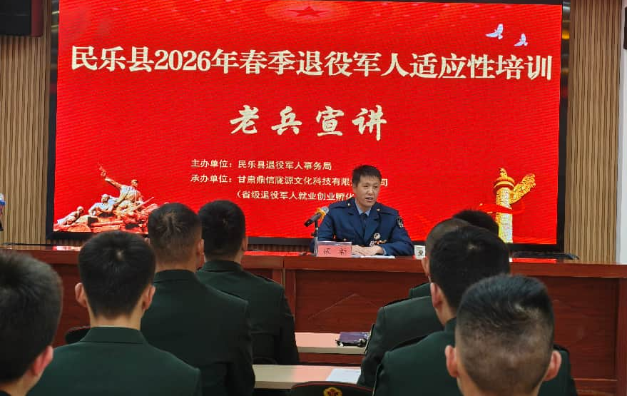 近日,民乐县紧扣“退役不褪色、转型谋新篇”目标,以春季退役士兵适应性培训为契机,持续擦亮“金山军魂颂-老兵宣讲”特色品牌,为2026年春季退役士兵送上了一场兼具思想深度与情感温度的“返乡第一课”,引导激励退役士兵在人生“新战场”上续写荣光、再立新功。