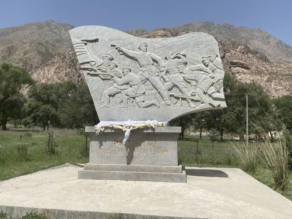 板达征战纪念碑位于肃南县马蹄乡芭蕉湾村。1937年红西路军在向祁连山腹地急速转移中,在肃南县马蹄乡芭蕉湾村境内与敌人发生激战。为彰显红色文化特色,肃南县于2012年筹集资金25万元,修建了红西路军板达征战纪念碑。