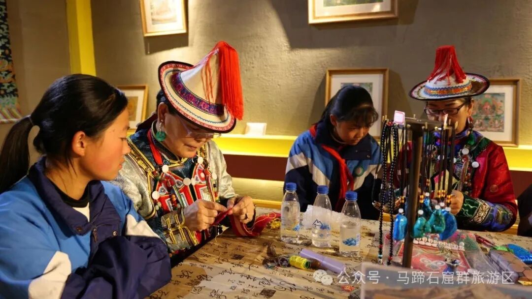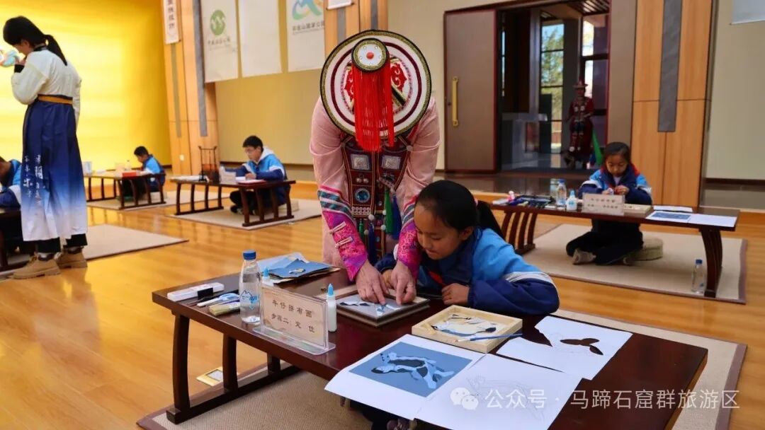 研学课程更是亮点纷呈。石头画、树叶拼贴、陶泥制作等手工体验,将石窟艺术、儒家文化与自然材料巧妙结合;裕固族服饰刺绣、织褐子等特色课程,让参与者在动手实践中触摸非遗温度;儒家经典摘抄、文化手抄报等活动,深化了传统文化的当代传承。