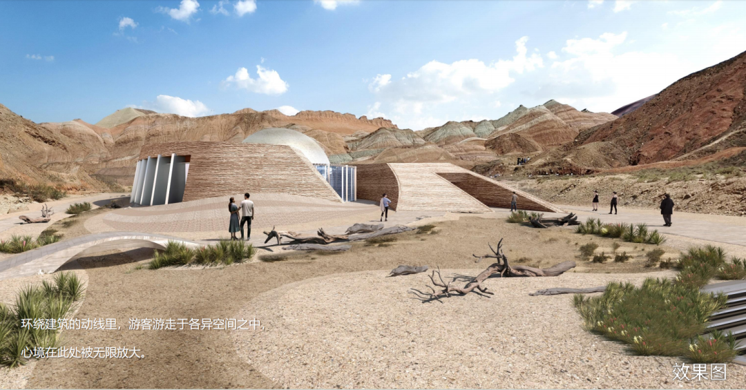 数字科普馆以“丹霞之眼”为核心理念,融入绿色低碳与生态共生设计,采用近零碳排放、本土材料应用及景观视线优化等先进技术,使建筑与七彩丹霞的自然景观和谐相融。馆内游线呈“S型”布局,设前、中、后三厅,通过数字化手段生动展现丹霞的地质演变与科学价值,带给游客沉浸式科普体验。