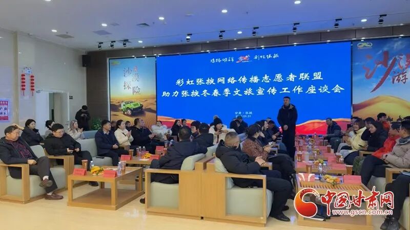 1月31日,张掖市委网信办和市文广旅游局联合组织召开彩虹张掖网络传播志愿者联盟助力冬春季文旅宣传工作座谈会,旨在进一步借助新媒体平台宣传推广张掖冬春季文旅资源,通过网红、主播独特的视角和新颖的宣传方式,切实将网络“流量”变为旅游“增量”,让更多人了解张掖、热爱张掖、宣传张掖。36名彩虹张掖网络传播志愿者联盟成员、18家重点旅游企业齐聚一堂,共商冬春季文旅宣传推广良策,共谋文旅产业提质增效路径。
