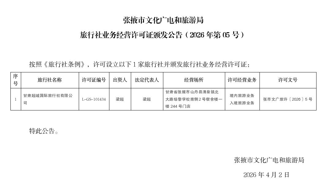 来源:张掖市文化广电和旅游局日期:2026-04-02
