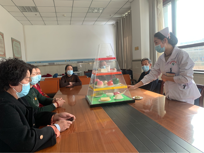 二是每周四开展健康教育知识讲座,为患者及陪护讲解医院疫情防控工作要求、病区管理和陪护制度,指导患者及陪护正确洗手、佩戴口罩以及相关注意事项,同时向糖尿病患者讲解糖尿病饮食的合理搭配等相关知识,引导患者积极配合疫情防控各项措施,促进患者康复。