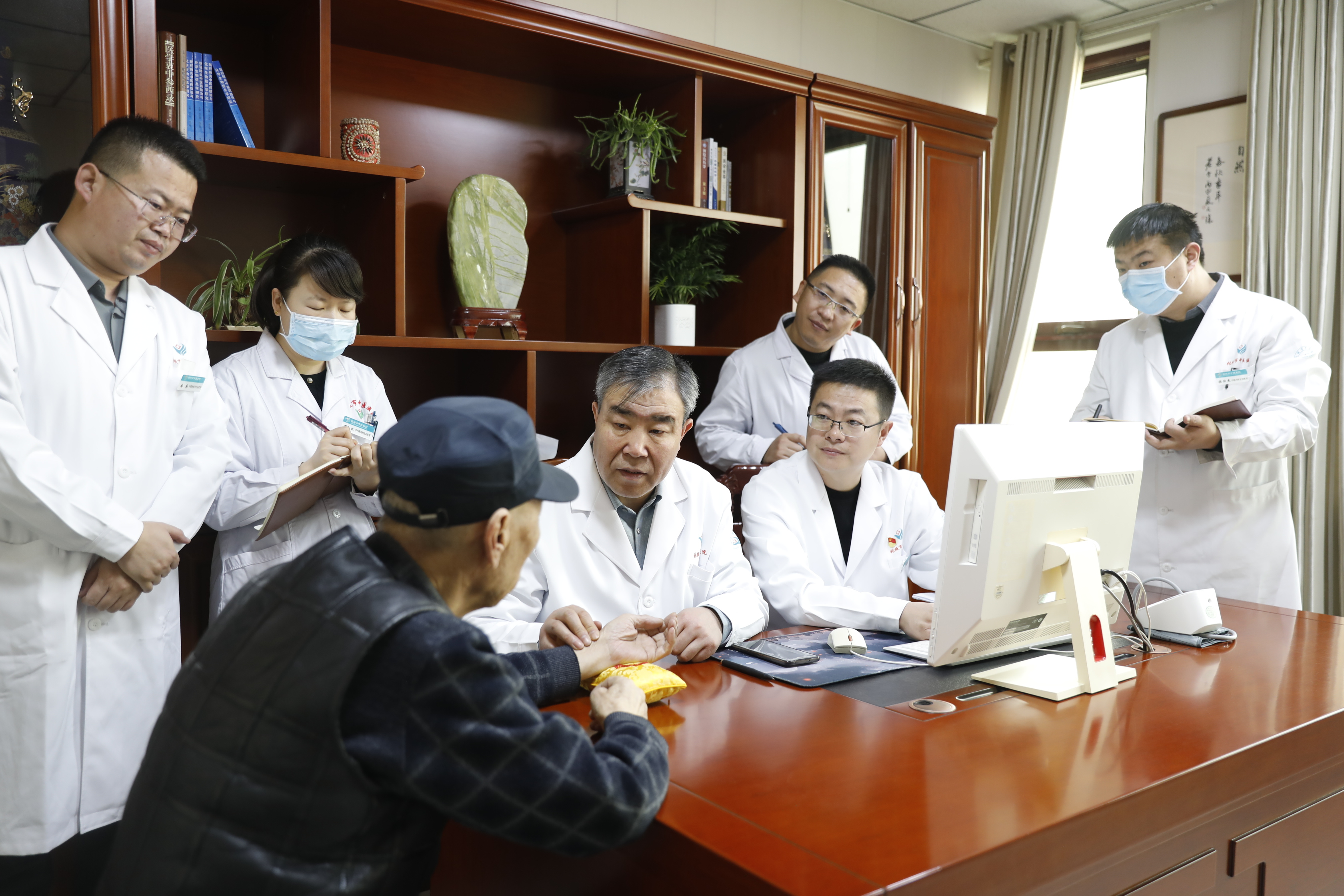 随后,黄邦荣主任深入医院老年病科开展义诊与教学查房。义诊过程中,他细致问诊、辨证开方,为患者提供个体化中西医结合治疗方案。在教学查房环节,他结合真实病例,从病情分析、辨证思路到用药调整,进行现场指导,使科室医护人员深受启发。