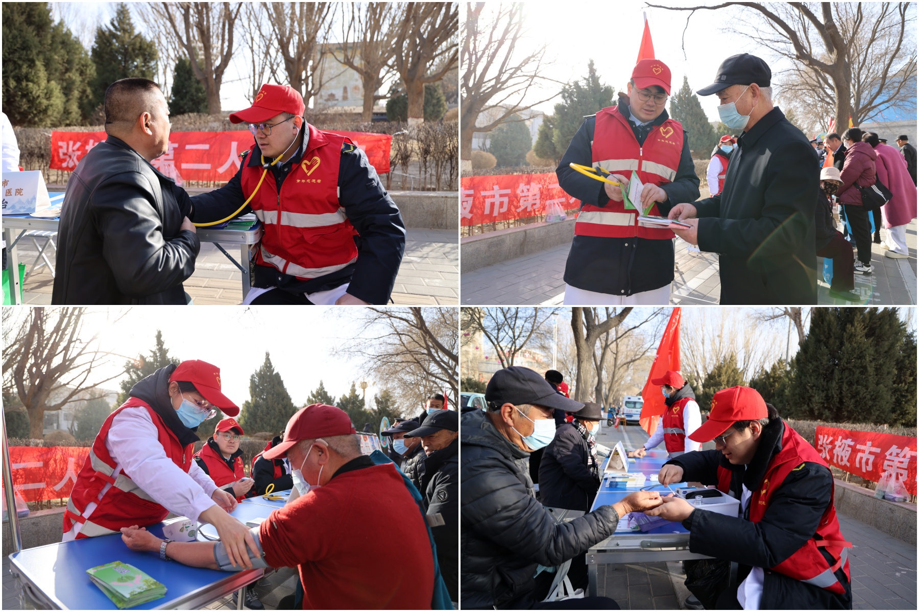 义诊现场,张掖市第二人民医院青年志愿者服务队累计为200余名过往市民免费检测血压、血糖、血氧,为160余人次提供了健康咨询。分发的宣教手册上详细记录了每位咨询者的个性化健康建议,包括血压偏高老人的定期监测提醒、血糖异常者的饮食调整建议等。