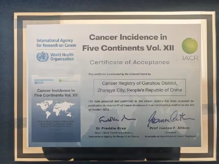 《五大洲癌症发病率》由国际癌症研究中心编撰,是全球癌症防控领域权威学术资料。此前,甘州区2015—2017年恶性肿瘤登记数据已入选该著作。此次获奖,是对甘州区卫生健康领域长期工作的高度肯定,也证明该区肿瘤监测数据具备国际可比性和学术价值。