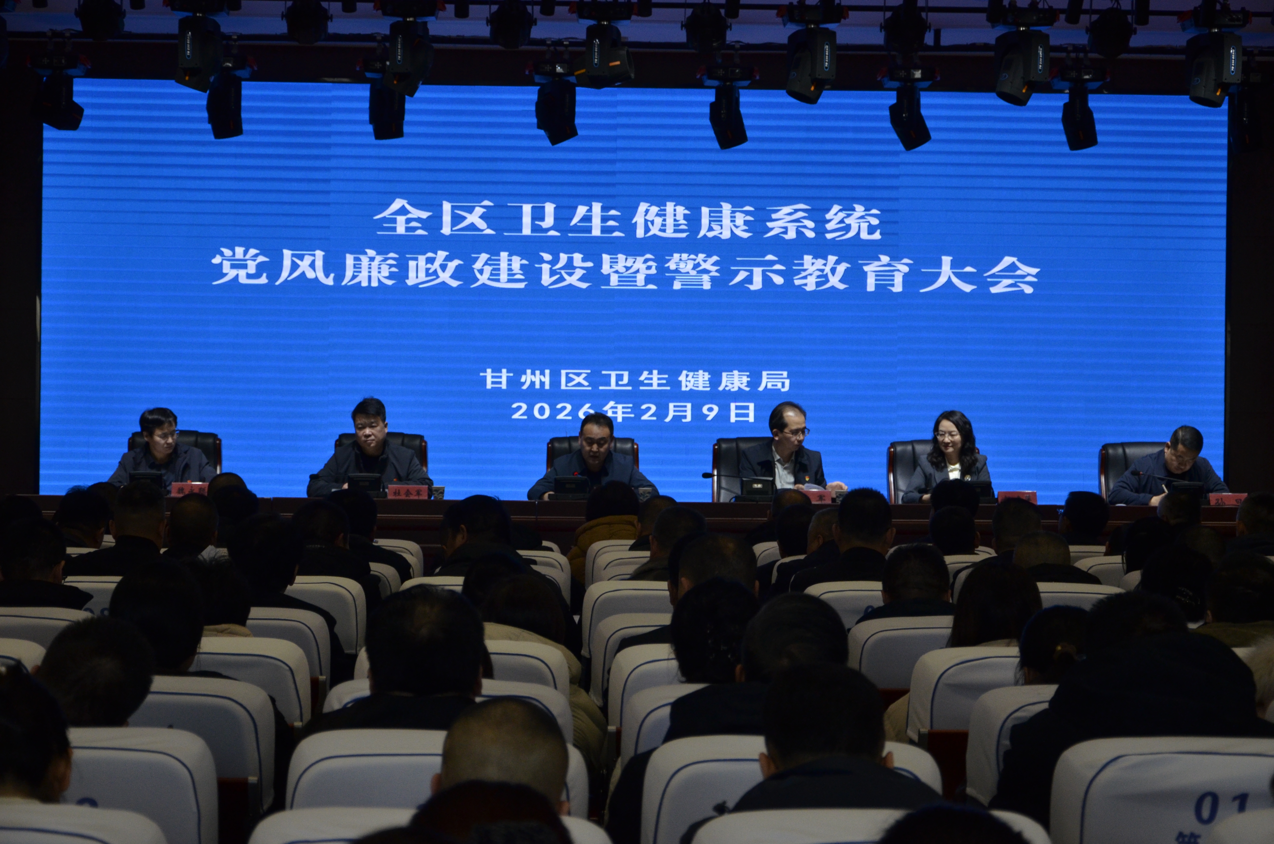 2月9日,甘州区卫生健康系统党风廉政建设会议召开,区卫生健康局领导班子成员、各医疗卫生单位主要负责人及机关股室负责人共100余人参加会议。
