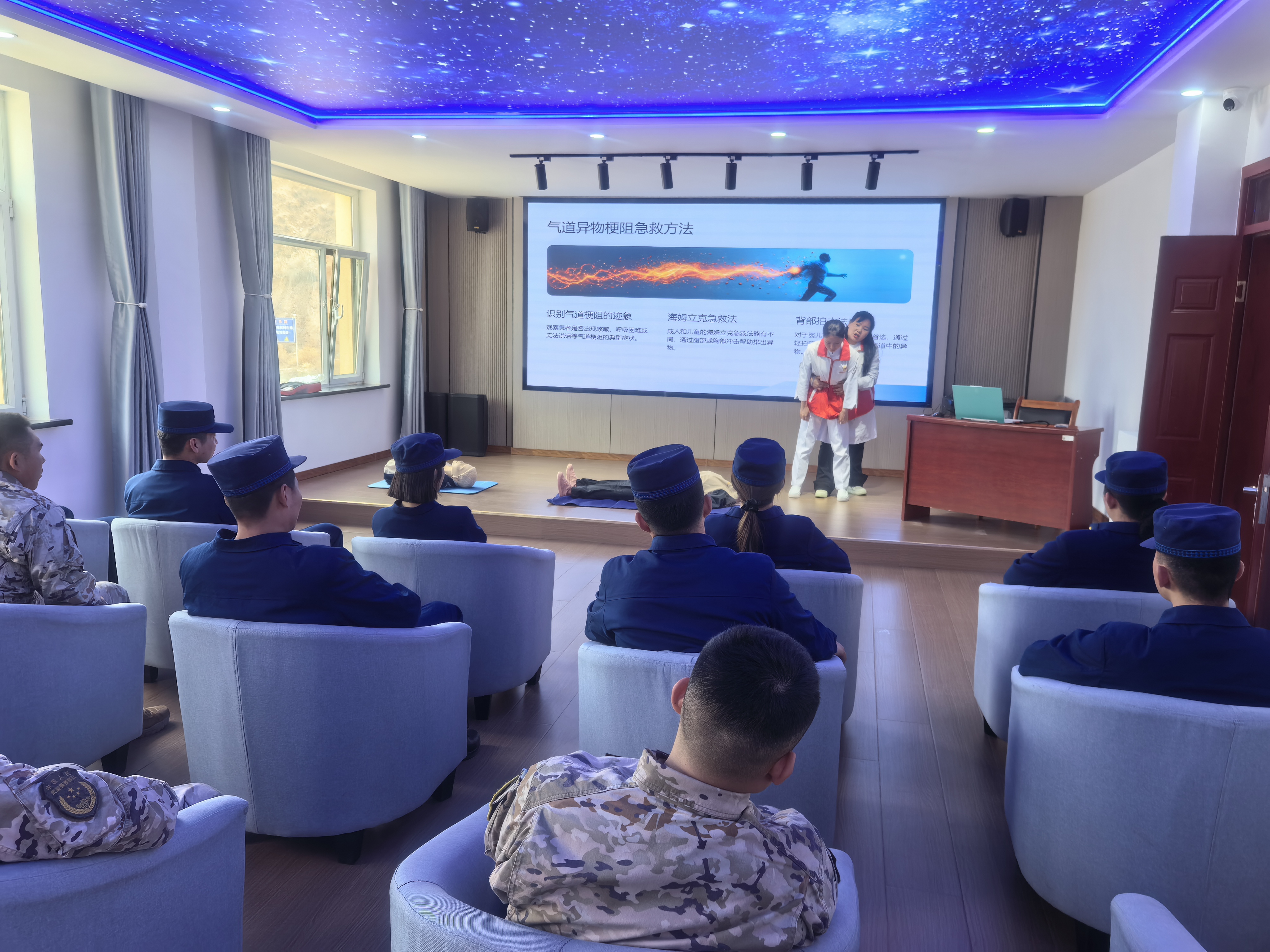 为推动急救知识与健康科普深度融合,师资团队同步开展健康科普宣讲,针对部队官兵一线救援人员高强度作业的职业特点,普及常见职业病预防、应急避险健康知识、日常健康防护技巧等内容,引导参训学员树立“预防为先、防治结合”的健康理念,既提升急救技能,也增强自身健康管理能力,助力“六进”科普工作在一线落地生根。