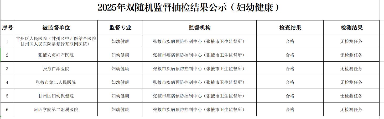 2025年双随机监督抽检结果公示(妇幼健康)'>