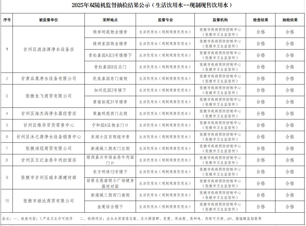 2025年双随机监督抽检结果公示(生活饮用水--现制现售饮用水)'>