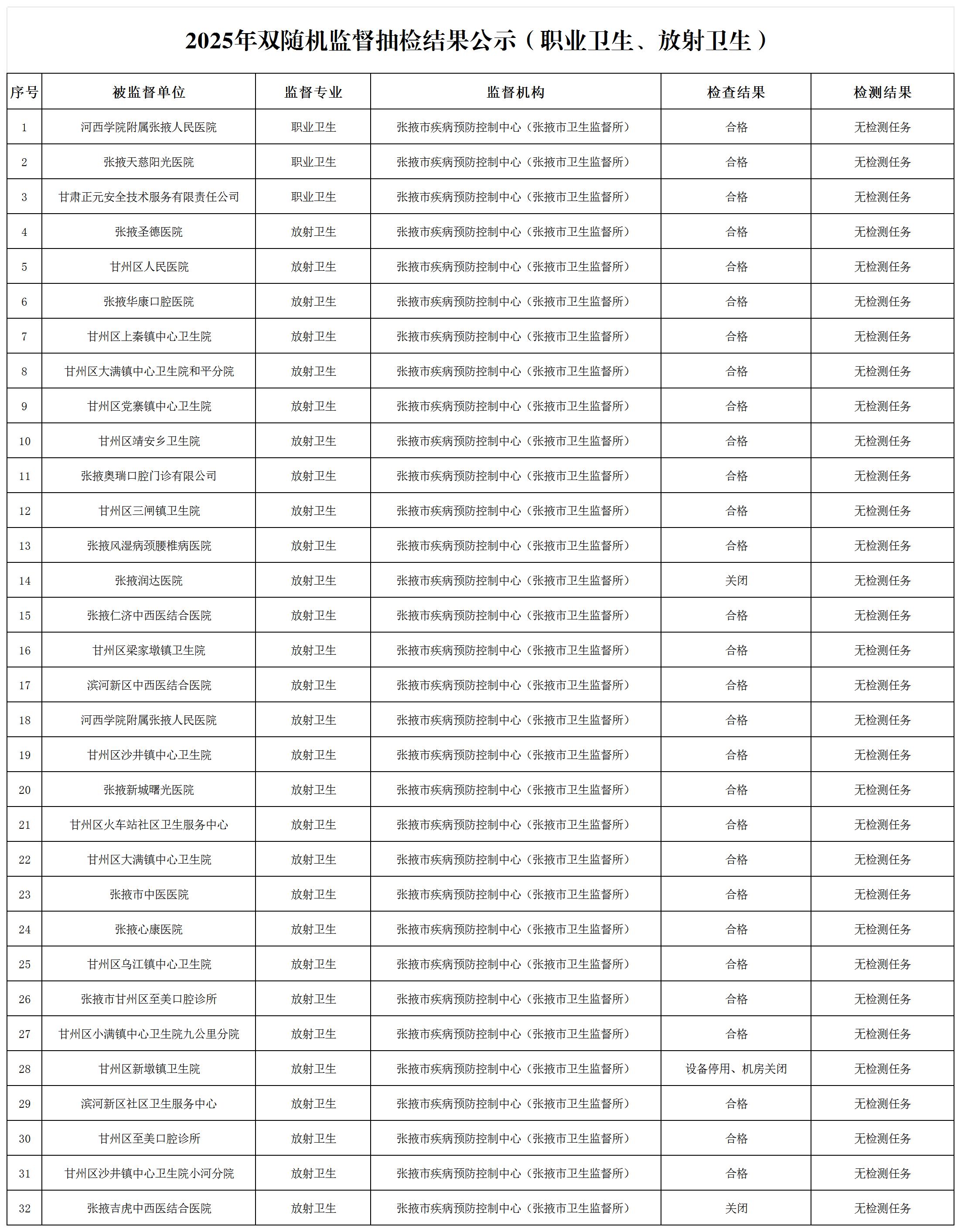 2025年双随机监督抽检结果公示(职业卫生、放射卫生)'>