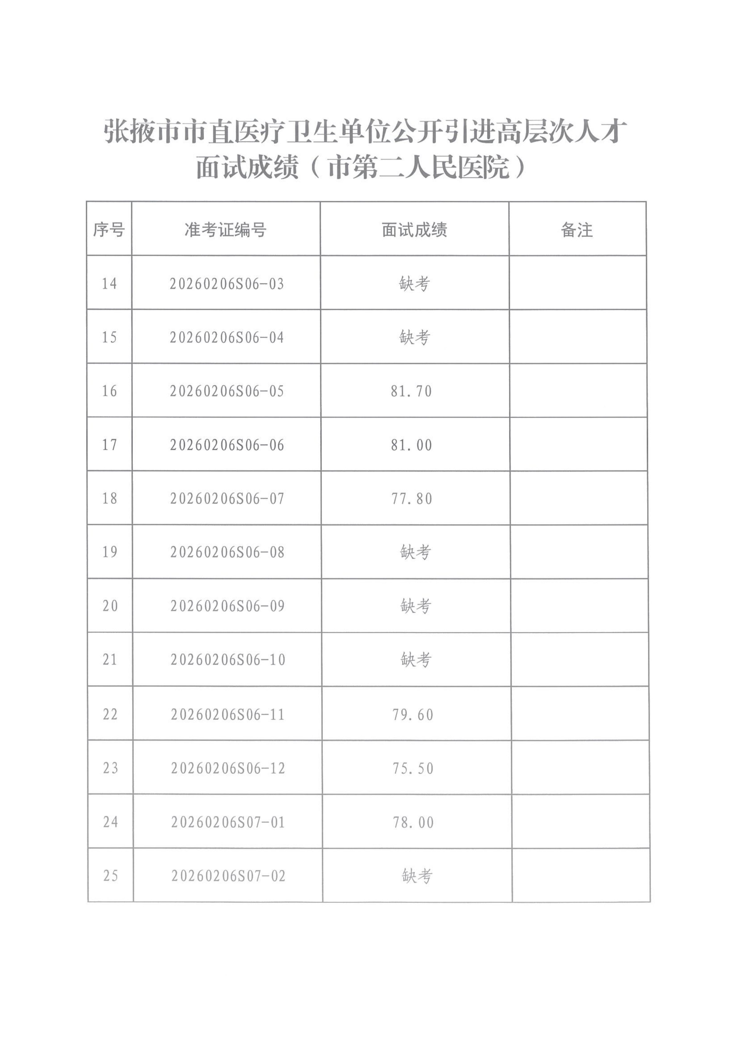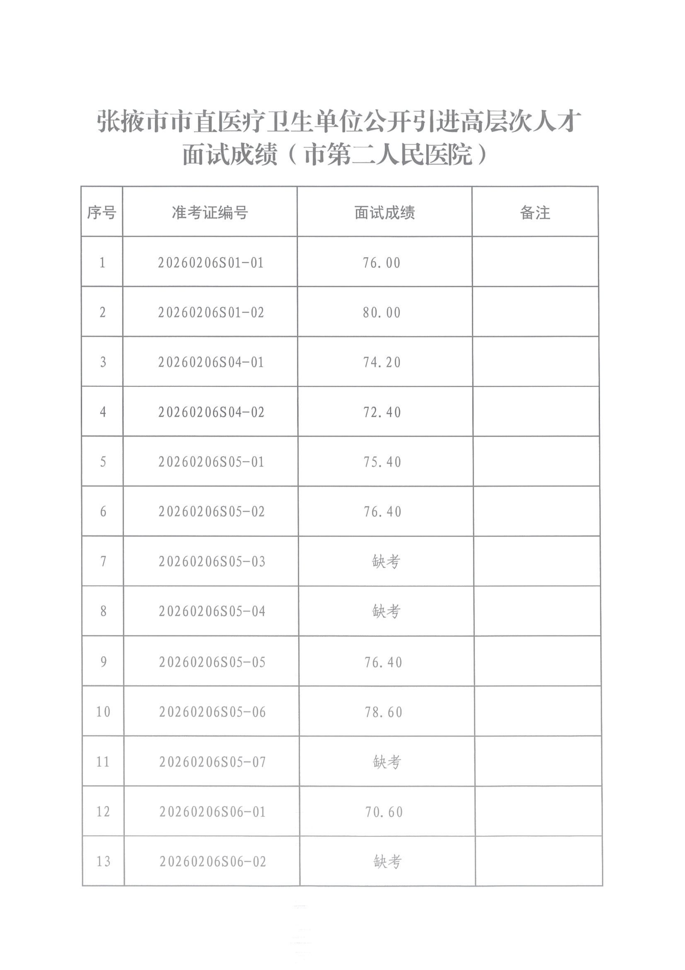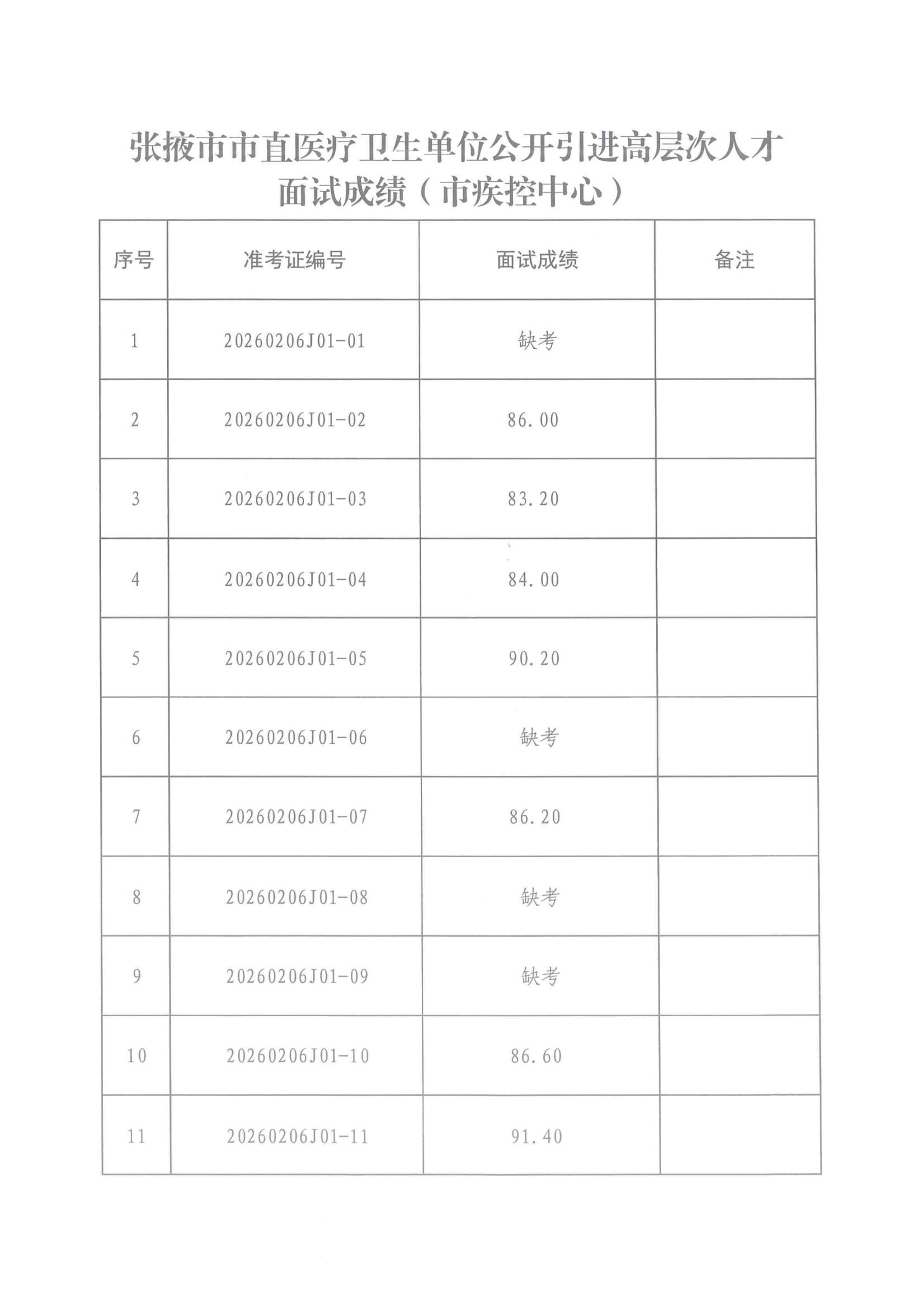 张掖市市直医疗卫生单位公开引进高层次人才面试成绩公示'>