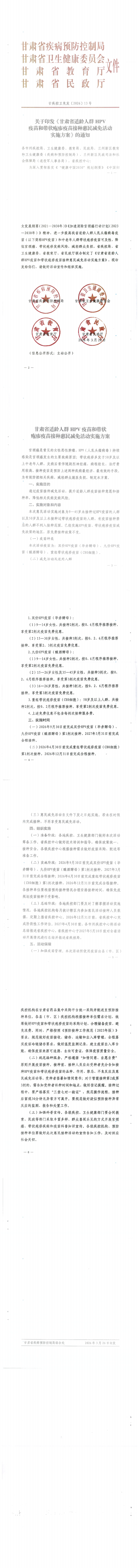 甘肃省适龄人群HPV疫苗和带状疱疹疫苗接种惠民减免活动实施方案的通知'>