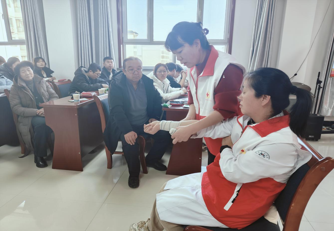 学急救 护平安——高台县举办社区博爱家园红十字救护员培训班'>