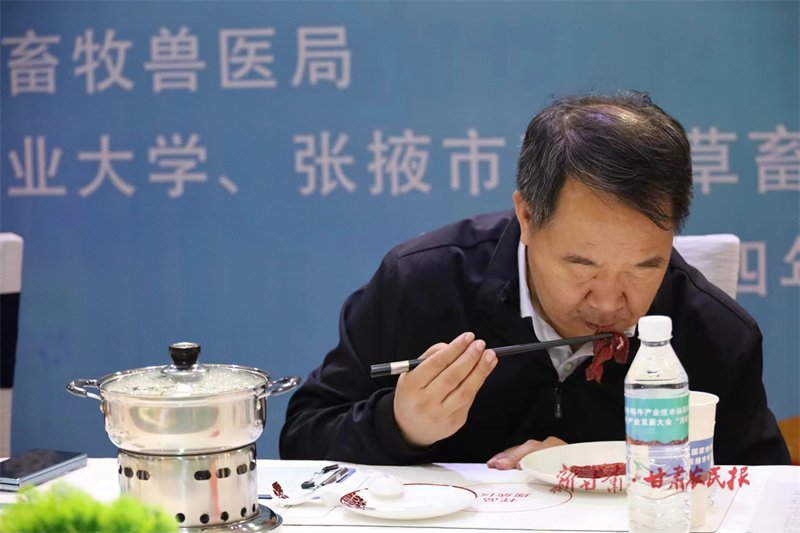 6月1日,国家肉牛牦牛产业技术体系技术交流暨张掖市牛产业发展大会“河西牛”牛肉品鉴会在张掖宾馆举行,大会邀请中国农业科学院北京畜牧兽医研究所畜产品质量与安全研究室主任孙宝忠等专家学者,对“河西牛”牛肉进行品鉴。
