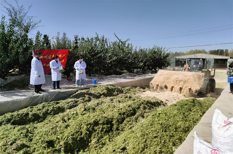 在甘浚镇山速农民养殖专业合作社,专家服务团成员结合当前肉牛养殖周期特点,针对养殖过程中常见的饲料配比不合理、圈舍环境调控不到位、应激反应处理不及时等问题,通过现场示范、案例分析的方式,手把手传授科学养殖技巧,帮助合作社直观掌握实用技术。同时,现场对青贮玉米的制作进行了技术指导,并进行了现场采样,后续将进行玉米赤霉烯酮、呕吐毒素、黄曲霉毒素等项目检测。