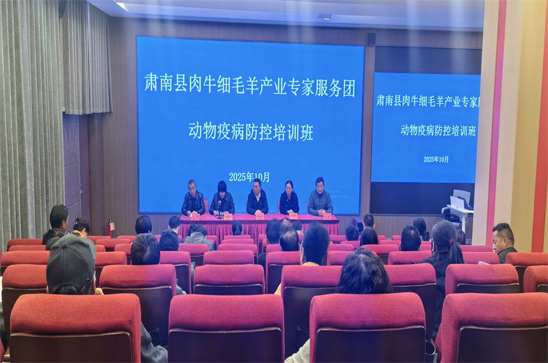 畜牧业作为自治县经济社会发展的主导产业和基础产业,在促进经济社会发展和农牧民增收起着至关重要的作用。而动物疫病防控既是守护产业安全发展的“第一道防线”,更是保障农牧民群众切身利益的重要技术支撑。为促进我县牛羊产业高质量发展,助力农牧民收入,推动乡村振兴,肃南县肉牛细毛羊产业专家服务团立足县情,以振兴乡村产业为己任,充分发挥团队精神和各自专业特长,坚持问题导向,常态化开展产业发展服务、科研成果转化、培育示范典型、人才培养帮带和建言献策“五项服务行动”。10月14日,肃南县肉牛细毛羊产业专家服务团在肃南县祁丰乡举办2025年第一期动物疫病防控技术培训班。举办此次培训班,旨在逐步提升基层动物防疫队伍专业技术水平,强化动物疫病综合防控硬实力,为乡村牛羊产业高质量发展提供坚实的科技支撑和人才保障。祁丰乡畜牧兽医站技术员、村级防疫员和部分养殖大户共40余人参加培训。