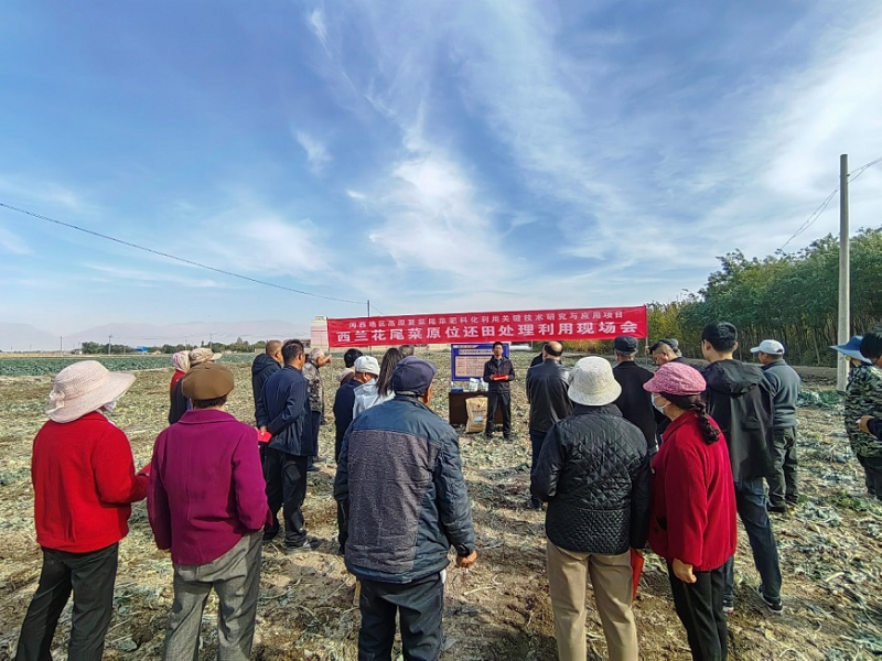 为充分发挥我院科技和人才优势,进一步提高尾菜资源化利用水平,推动乡村建设示范村蔬菜产业转型升级,10月24日,我院在省级乡村振兴示范帮扶村——甘州区上秦镇李家湾村,组织召开西兰花尾菜原位还田处理利用现场会,上秦镇相关工作人员、蔬菜种植专业合作社主要负责人及种植大户代表等共50余人参加了此次现场会。