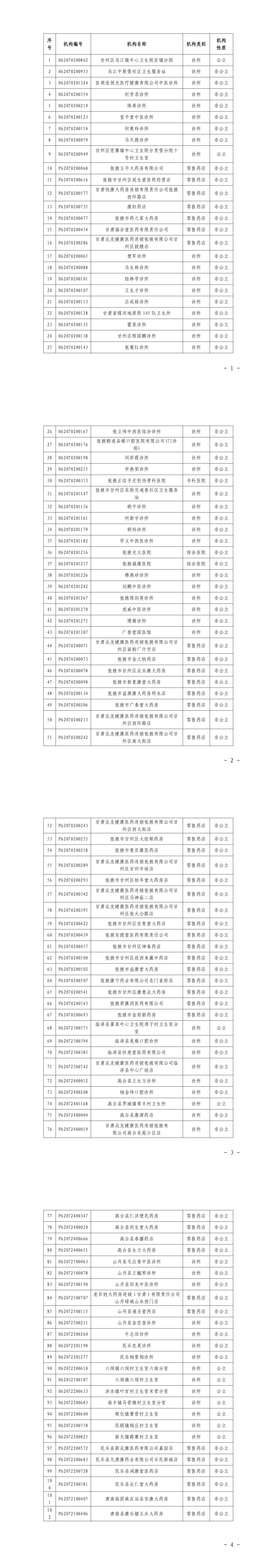 据《医疗机构医疗保障定点管理暂行办法》《零售药店医疗保障定点管理暂行办法》等规定和《张掖市定点医疗机构医疗保障服务协议》(2024版)《张掖市定点零售药店医疗保障服务协议》(2024版)约定,现将张掖市2025年-2026年2月终止和解除医保协议的102家医药机构予以公示,协议终止和解除后产生的医药费用,医疗保障基金不再结算,特此公告。