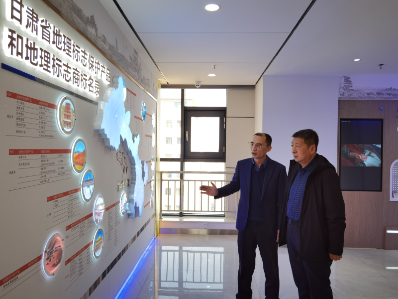 随后,甘肃省知识产权保护中心主任马克军对中心的功能区域规划、办公场地空间布局设计、部门设置等情况进行了介绍,并对甘肃省地理标志产品、专利产品展示区、甘肃省知识产权大事记发展脉络墙等公共区域的公益科普宣传板块进行了详细的讲解。
