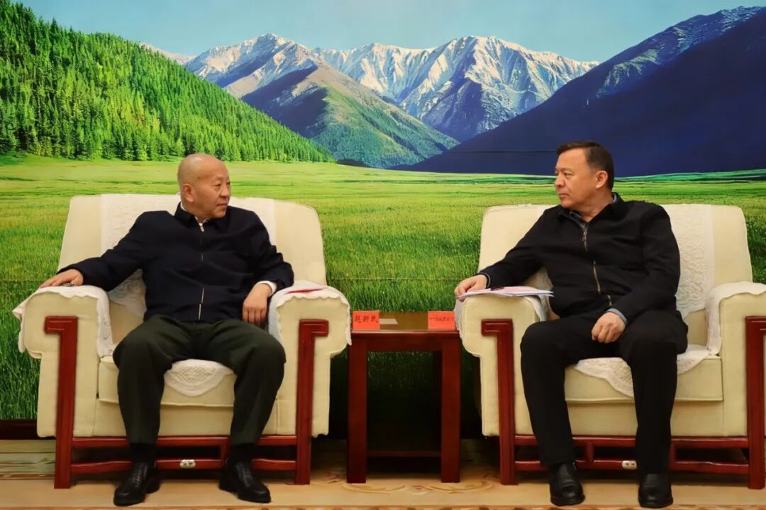1月25日,张掖市委副书记、市长叶尔波力·孜汗与新疆生化药业董事长赵新民一行座谈,围绕医学、文化建设及跨界融合进行交流洽谈。市政府秘书长杨育林参加。